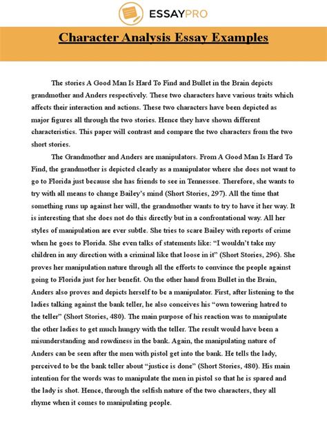 Read sample character analysis essays PDF